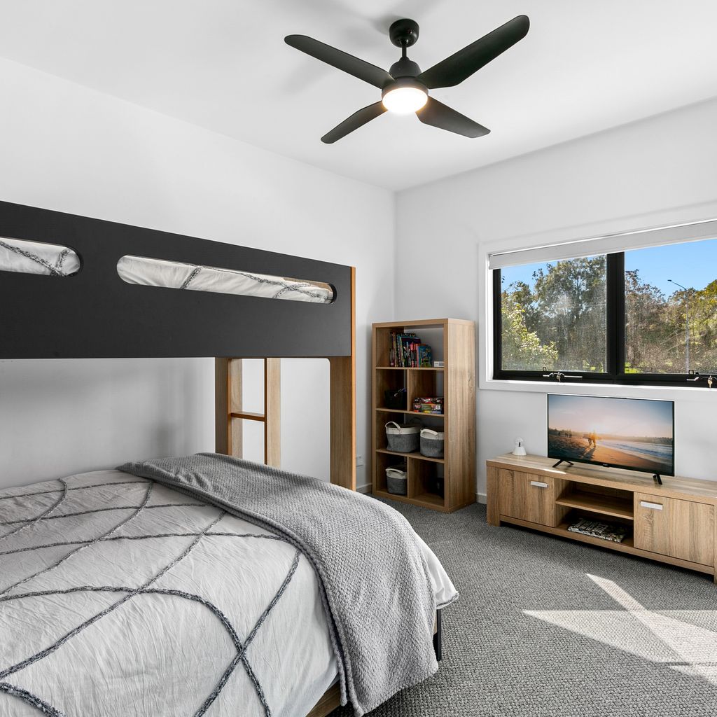 The interiors are designed to provide comfort and relaxation. Master bedroom offers ensuite and access to the balcony with an outlook over the swimming pool. 2 bedrooms are located upstairs and another bedroom located downstairs. Then there is a separate granny flat if you need the privacy between family or friend groups. The main bathroom offers bath which is handy for the families with young ones. Lake Front Stay has an additional shower and toilet in the well appointed laundry area downstairs.