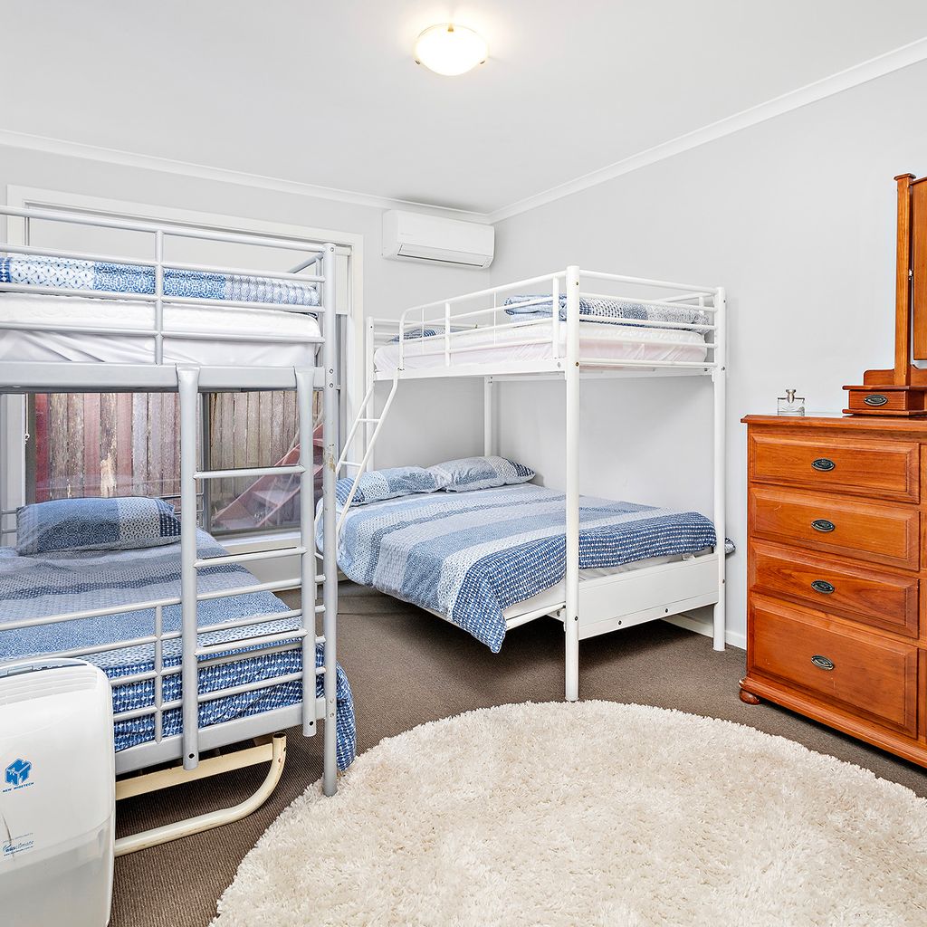 Features a fully equipped kitchen with dishwasher, flat screen TV with Foxtel & DVD player, 2 bathrooms, washing machine, double garage and off-street parking. A portable cot and high chair are available.