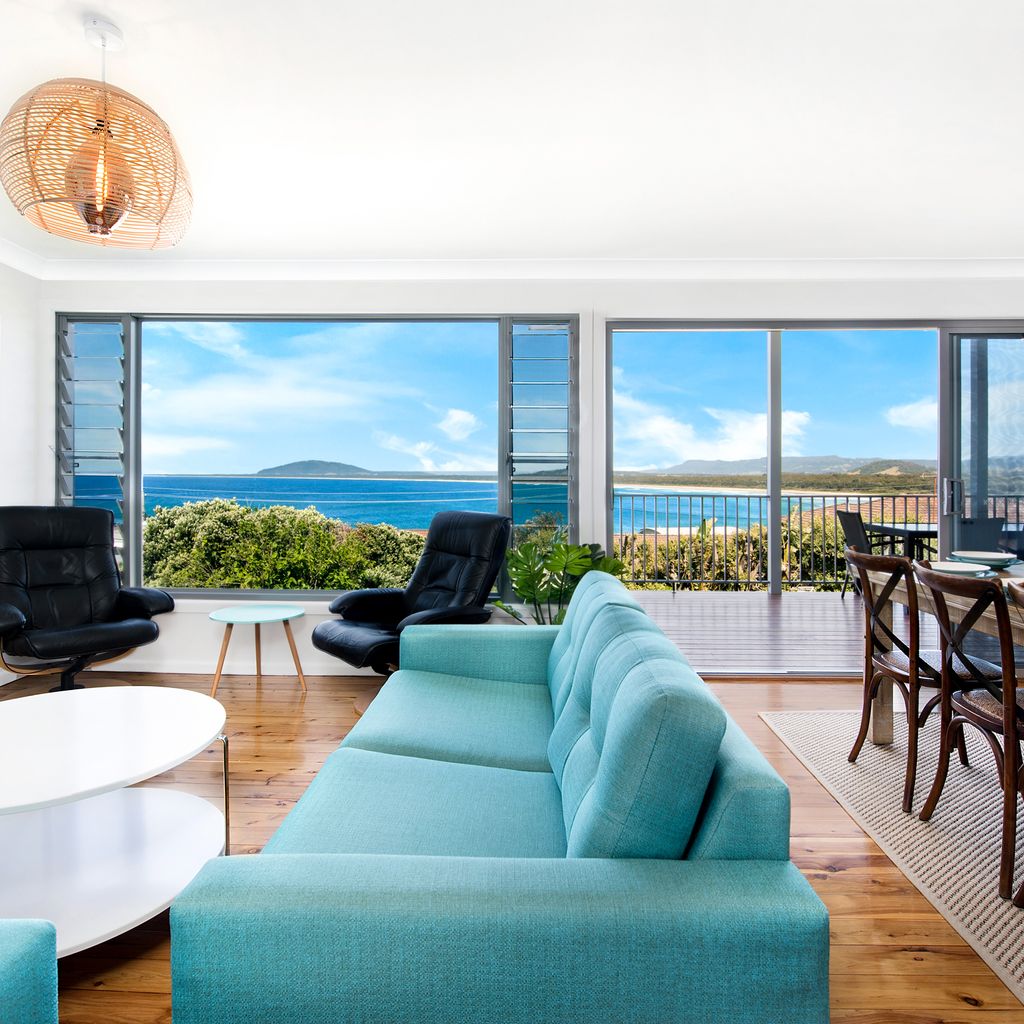 Classic recently renovated 3 bedroom, 2 bathroom beach house in Gerroa, has amazing ocean, beach and sunset views over Seven Mile Beach.
