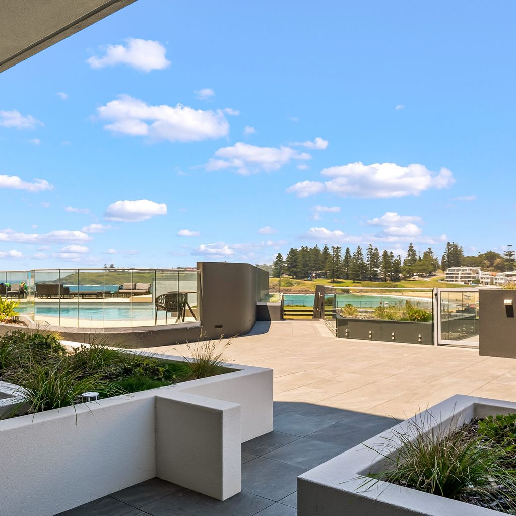 Kove Apartment guests can enjoy relaxing by the pool, taking in panoramic coastal ocean views.