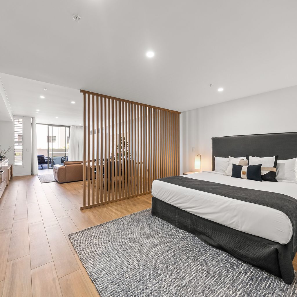 • Vertical room divider giving partial separation from bedroom and living areas