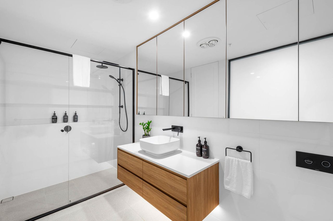 • Modern private bathroom with walk-in shower