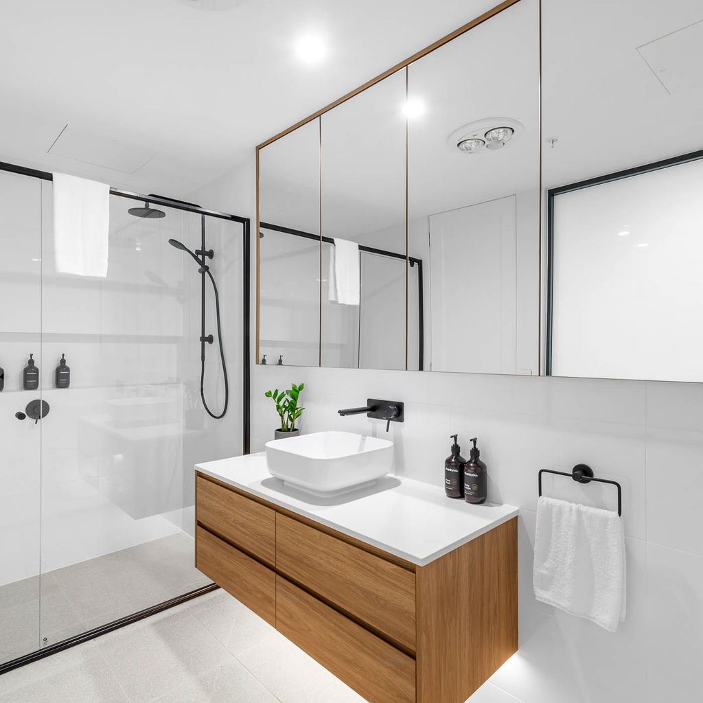 • Modern private bathroom with walk-in shower