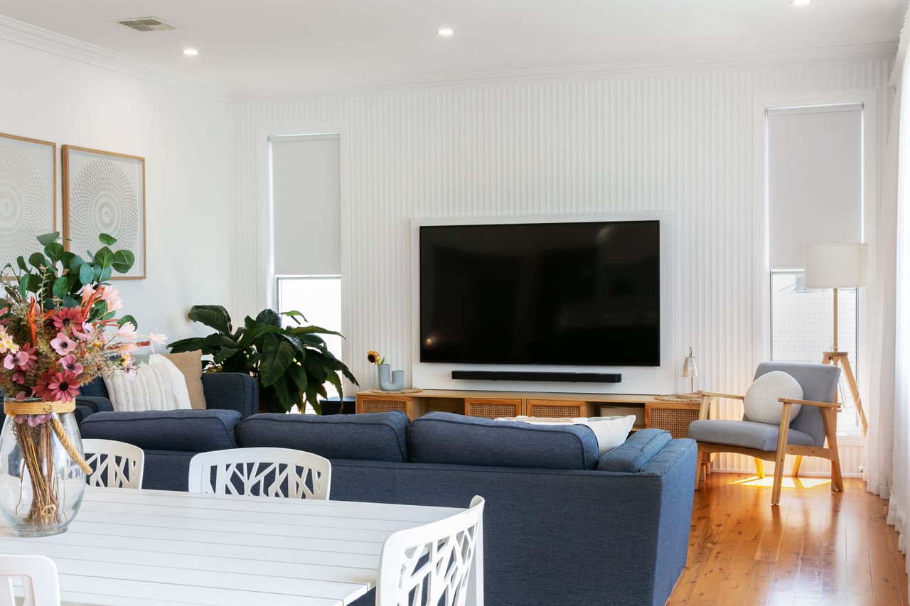 Perfect for families or small groups, the home features two modern bathrooms and two separate living areas, offering plenty of space for everyone to unwind. Whether you’re enjoying a movie night indoors or curling up with a book in the sun-drenched lounge, there’s room for both togetherness and quiet moments.