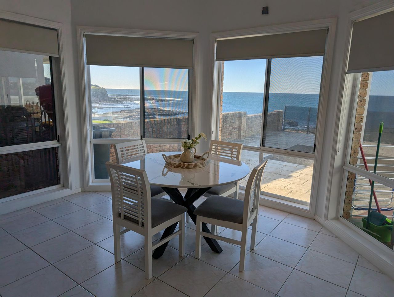 Small kitchenette is equipped with everything you need to cook for your short stay. This property has the most amazing views overlooking the ocean. Access to the rocks below for that morning stroll, walk along to get to beach. It is well situated, has everything you need for a relaxing and enjoyable stay.