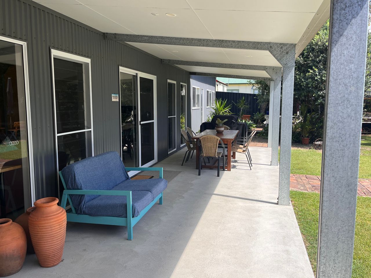 There is a single car carport, but ample parking for the house. There is an outdoor shower, and large spacious garden to be enjoyed by all.