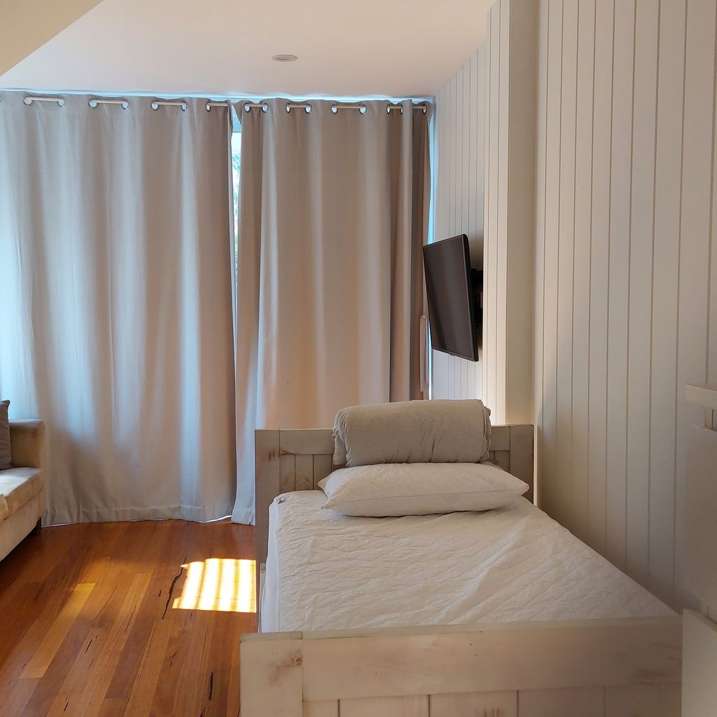 Downstairs apartment has 1 double bed, 1 single bed & 1 Double sofa bed. Second lounge area, TV/DVD, split system air conditioner, bathroom and kitchenette.